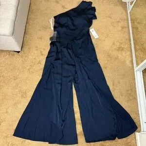 AZAZIE HAGRETTA One Shoulder Dark Navy Jumpsuit/Pantsuit Stretch Satin Dress 10