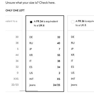 Size 2 (French 34, please see size chart for conversion)