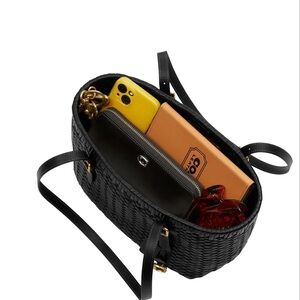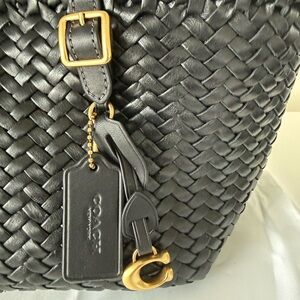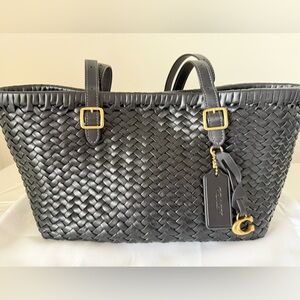 Coach Black Woven Leather Swing Tote