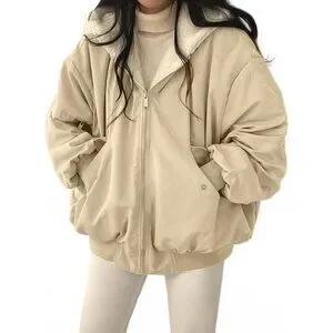 Women's Winter Coats Puffer Long Sleeve Oversized Zipper Warm Jackets Apricot