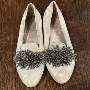 AGL Gray Suede Beaded Tassel Loafer Flats Attilio Giusti Leombruni size 7.5