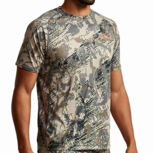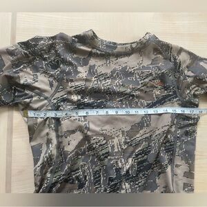 Sitka Men’s tee shirt. Mens size medium on tag but fits more like a small due to shrinking. Good used condition. See pictures for measurements.