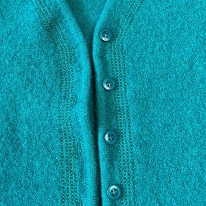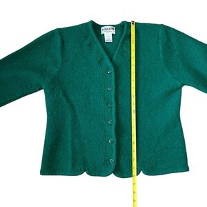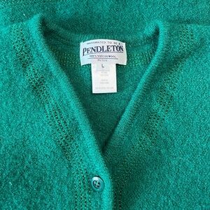 100% Virgin Wool Pendleton Green Button Up Cardigan with Embroidered Detail
