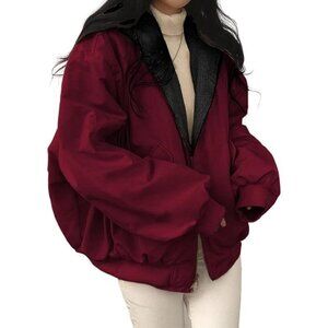 Women's Winter Coats Puffer Long Sleeve Oversized Full Zipper Warm Jackets Red