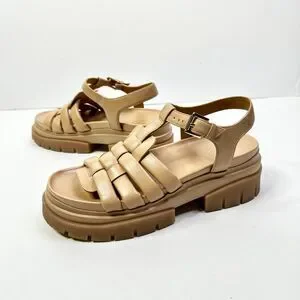 Ash Sandals Women 10 Beige Sirena NEW Leather Platform Chunky Shoes Athleisure