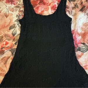 Gorgeous black lace dress with a sleeveless design. Has a beautiful lace design and sheer back with Zipper. Built in slip. Perfect for any occasion