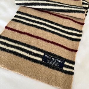 VTG Burberry Lambswool Scarf England Camel Brown/Black/White Stripe.