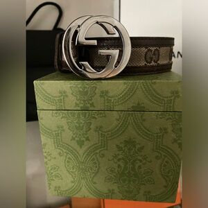 Gucci silver interlocking belt monogram brown size 80/32 authentic comes with box