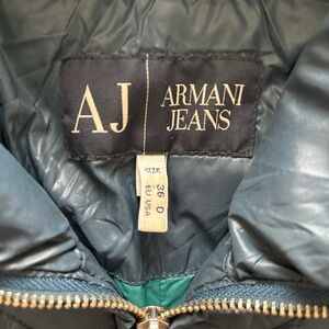 Armani Jeans Women's Puffer Jacket - Dark celadon full zip pockets. Size 0