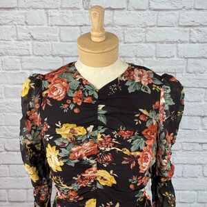 Veronica Beard Floral Long Sleeve Dress - Black and Multicolor