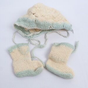 Keywords: Vintage, Handmade, Crochet, Baby Set, Newborn, Coming Home Outfit, Cottagecore, Heirloom, Unisex, Mint Green, Cream, Winter, Baby Shower Gift, Infant Clothing