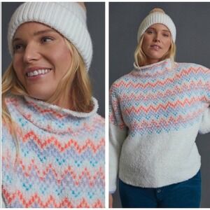 Anthropologie Pilcro Sweater Womens 10 Selene Multicolor Nordic Stretch Boxy Fit