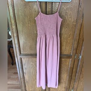 One Clothing smocked button-front midi dress Linen Blend Mauve Pink Large