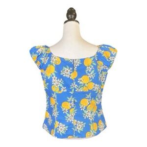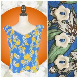 Hell Bunny Retro Blue Valencia Orange Blossom Floral Short Sleeve Top XL