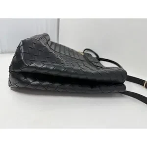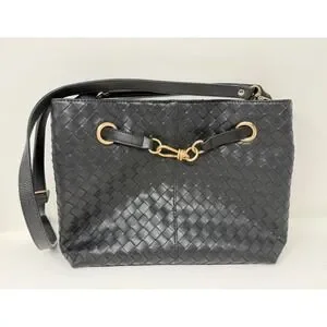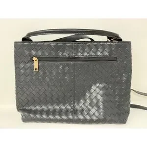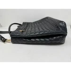 Black Woven Faux Leather Satchel Crossbody Handbag Gold Hardware