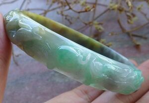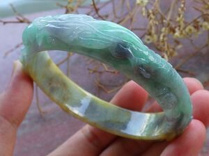 Certified Natural A JADE Jadeite Dragon Phoenix Bangle Bracelet 58mm 手镯