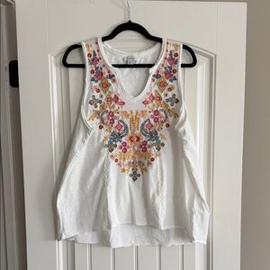 Elegant sleeveless top with vivid embroidery. Adds a pop of color to any outfit.