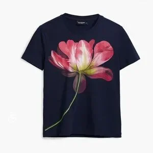 Desigual Damen Navy Tee with Pink Floral Print NWT Size S