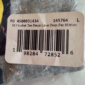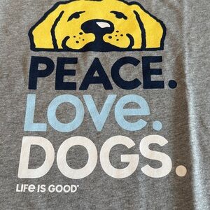 Life is Good NWT Crusher short Sleeve Tee shirt “Peace Love Dogs” Size: Large Color: Gray note the tag says men’s.