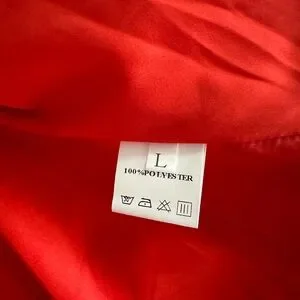 Stylish red and black striped puffer jacket. Features a cozy design with front pockets.