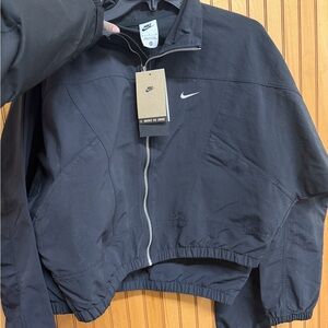 Nike black jacket with a sleek design. Paired with hot pink Nike leggings and Nike sports bra. Ideal for fitness enthusiasts. Or every day wear (PLEASE IGNORE SIZE ON LAST PICTURE I HAD MULTIPLE SIZES AVAILABLE AND ALREADY HAD THAT PICTURE IN MY PHONE)
