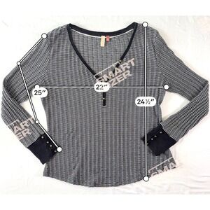 Anthropologie Pilcro Striped Henley Top XL Thermal Textured Sporty Boho Layering