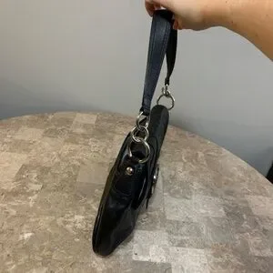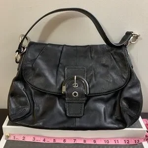 Authentic Coach Soho Y2K Black Leather Bag Vintage Big Buckle Flap Shoulder Hobo