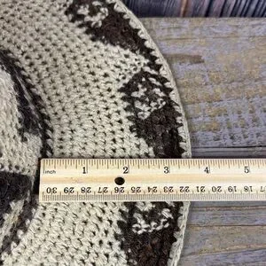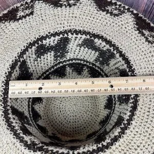 This item is a handcrafted Peruvian alpaca wool hat featuring a wide brim and traditional Andean patterns.