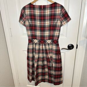 Brooks Brothers Red Fleece 100% Wool Creme Red Plaid Pleated Dress Sz 4 Holidays