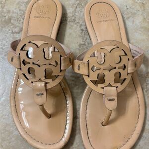 Stylish Tory Burch sandals with signature logo design. Perfect for casual outings.