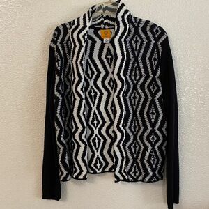 Ruby Rd. Black and White Geometric Cardigan