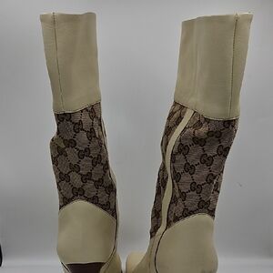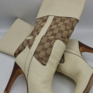 Chic Gucci boots with cream leather and brown monogram design. Perfect for stylish outings. USED 2x very good condition