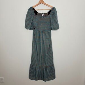 WAYF Cut Out Smocked Gingham Midi Dress summertime vacation Size Large