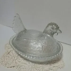 Vintage Indiana Glass Clear Hen on Nest Dish