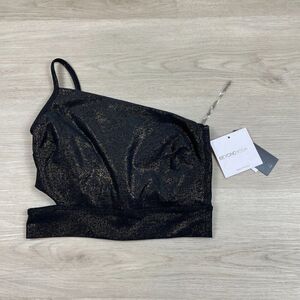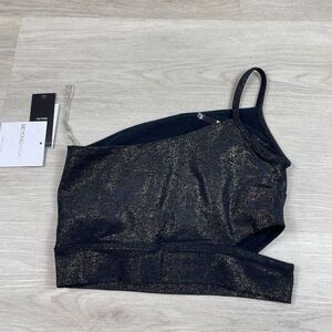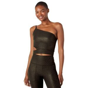 Elevate your activewear game with this NWT Beyond Yoga Softshine Wanderlust Cropped Tank in Women's XS. This tank top features a one-shoulder neckline and strappy sleeves, with a pullover closure for ease of wear. Its blended fabric of polyester and spandex makes it lightweight, stretchy, and breathable, making it perfect for all seasons. With a solid black and gold color combination, this tank top is perfect for any occasion, whether it be travel, outdoor activities, or just casual wear. It also includes several features such as easy care, moisture-wicking, and padded cups, making it comfortable and slimming. Whether you're into tennis, cycling, or yoga, this tank top is perfect for any activity. Sold out on Beyond Yoga's website.