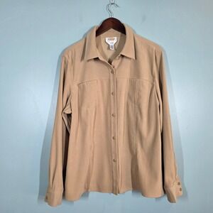 Talbots Stretch Tan Button Down Shacket Women's XL Long Sleeve Collared Top