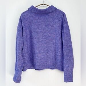 Cute cropped purple cardigan sweater. Perfect for an oversized look. I would pair it with some baggy ADIDAS tearaways and chunky shoes for casual day dates. This piece has minimal pilling.
