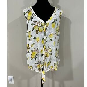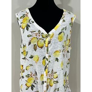 Cynthia Rowley Sz XL 100% Linen Lemon Print Top Euro Summer Coastal Grandma