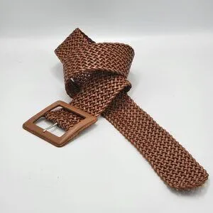 Banana Republic Woven Leather Boho/Southwestern Belt With Detailed Square Buckle