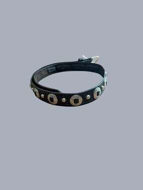 Vintage Western Concho Belt, Black Basketweave Tooled Leather, Size 36. This classic western accessory features detailed basketweave embossing and silver-tone concho studs for an authentic aesthetic. Perfect for adding a touch of Americana to jeans or trousers. Crafted from durable black leather with a sturdy metal buckle. Good vintage condition. Shows natural character and mild wear consistent with age, including some creasing on the leather strap. No major flaws or structural damage.