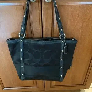 Coach Black Signature Tote with Studded Straps