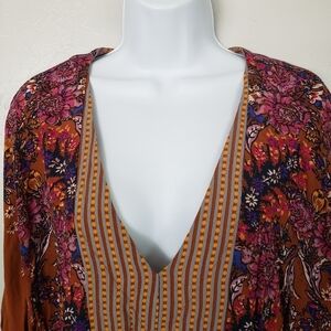 Free People Long Sleeve Cropped Blouse Boho Mustard Navy Orange Floral Fall Top