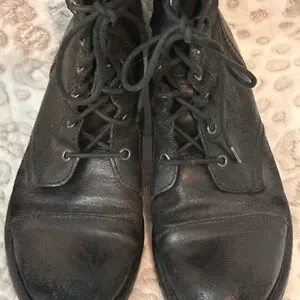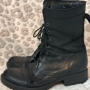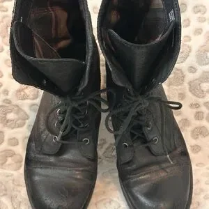 BORN black leather lace-up combat boots. Perfect for a bold look and they are very comfortable. Gently used. They could use new laces. Decluttering. Please see pics and ask questions prior to purchase. Thanks for looking.
