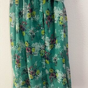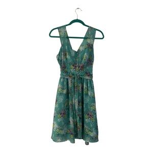 LC Lauren Conrad Alluring Strap Sleeve Teal Dress with Floral Pattern, Size 6