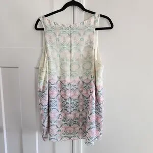 Chic sleeveless blouse with vibrant patterns. Perfect for any occasion. Size xl. No flaws found upon inspection.