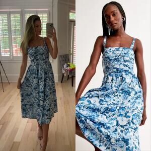 Abercrombie & Fitch Emerson Floral Midi Dress Blue XS Cottage Regencycore