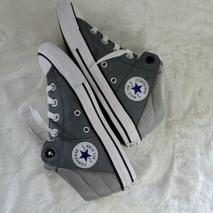 "CONVERSE" CHUCK TAYLOR ALL STAR ⭐ MID-TOP STREET SNEAKERS (Unisex) - Canvas construction, Textile upper, Round cap toe, Padded collar and tongue - Lace-up - Lightly padded Gray insole - Striped midsole - White sole - Grip sole.