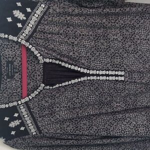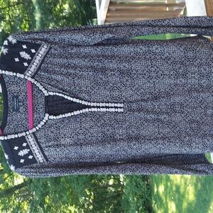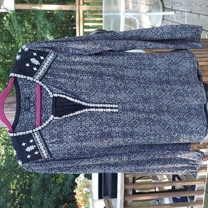 Lucky Brand Embroidered Cotton Modal V-Neck Boho peasant tunic Top Sz L