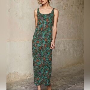 Peruvian Connection Art Nouveau Pima Cotton Tank Maxi Dress, Sz S