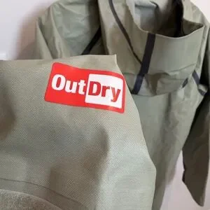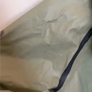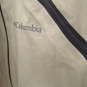 Stylish Columbia jacket in olive. Features waterproof material and black trim. Includes zippered pockets and hood. Jacket has mild signs of wear, included in pictures are representations of the wear.